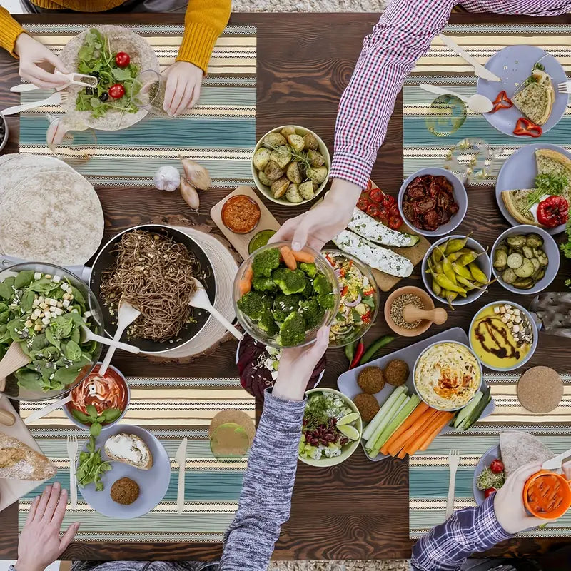 4pcs Linen Striped Boho Placemats for Dining Table Set