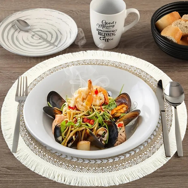 6pcs/8pcs/10pcs Bohemian Round Tassel Placemats